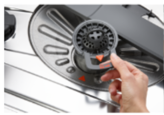 - Maak de te vervangen filter los door deze naar rechts te draaien. Neem de filter uit de vaatwasser.
