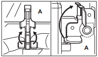 - Ouvrez complètement la porte et ouvrez les clips (A) au niveau des charnières en bas de la porte du four.