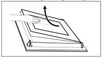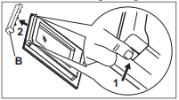 - Saisissez le couvercle de la porte (B) sur le dessus de la porte des deux côtés et poussez vers l'intérieur pour libérer le verrou à clip.