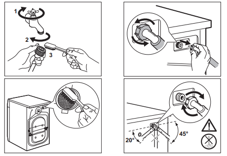 - Als er water in de wasmachine achtergebleven is, gebruik dan de noodafvoer.