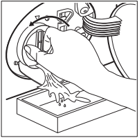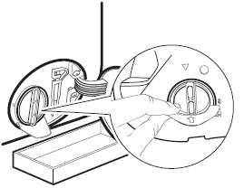 - Open het pluizenfilter en laat het water vanuit de voorkant in een opvangbak lopen.