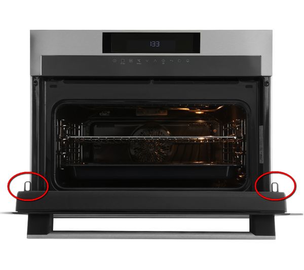 - Controleer of één van de deurhaken van de deur niet afgebroken is, zoals aangegeven in de onderstaande afbeelding.